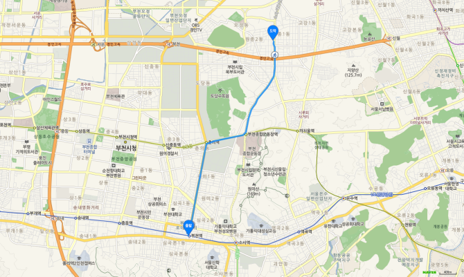 부천 북부역 하차 후 606번 버스 오시는 길